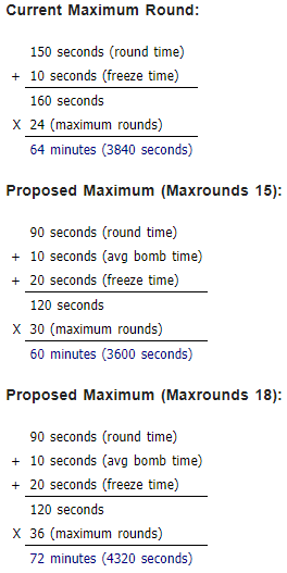 Round time changes that were suggested when moving from MR12 to MR15 or 18. Source
