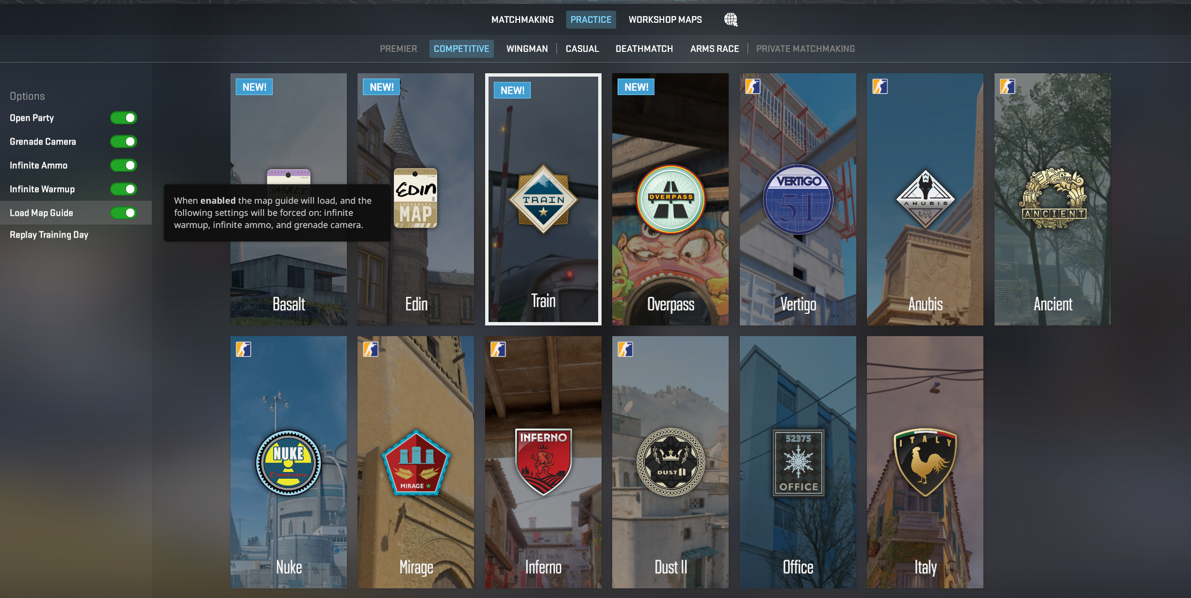 With the release of Train, Valve also added a new feature for the practice mode of the map which included a handful of smoke lineups that players can use to get familiar with the new map. This new feature is currently only for de_train however, you can still use that feature by creating your own map guides.